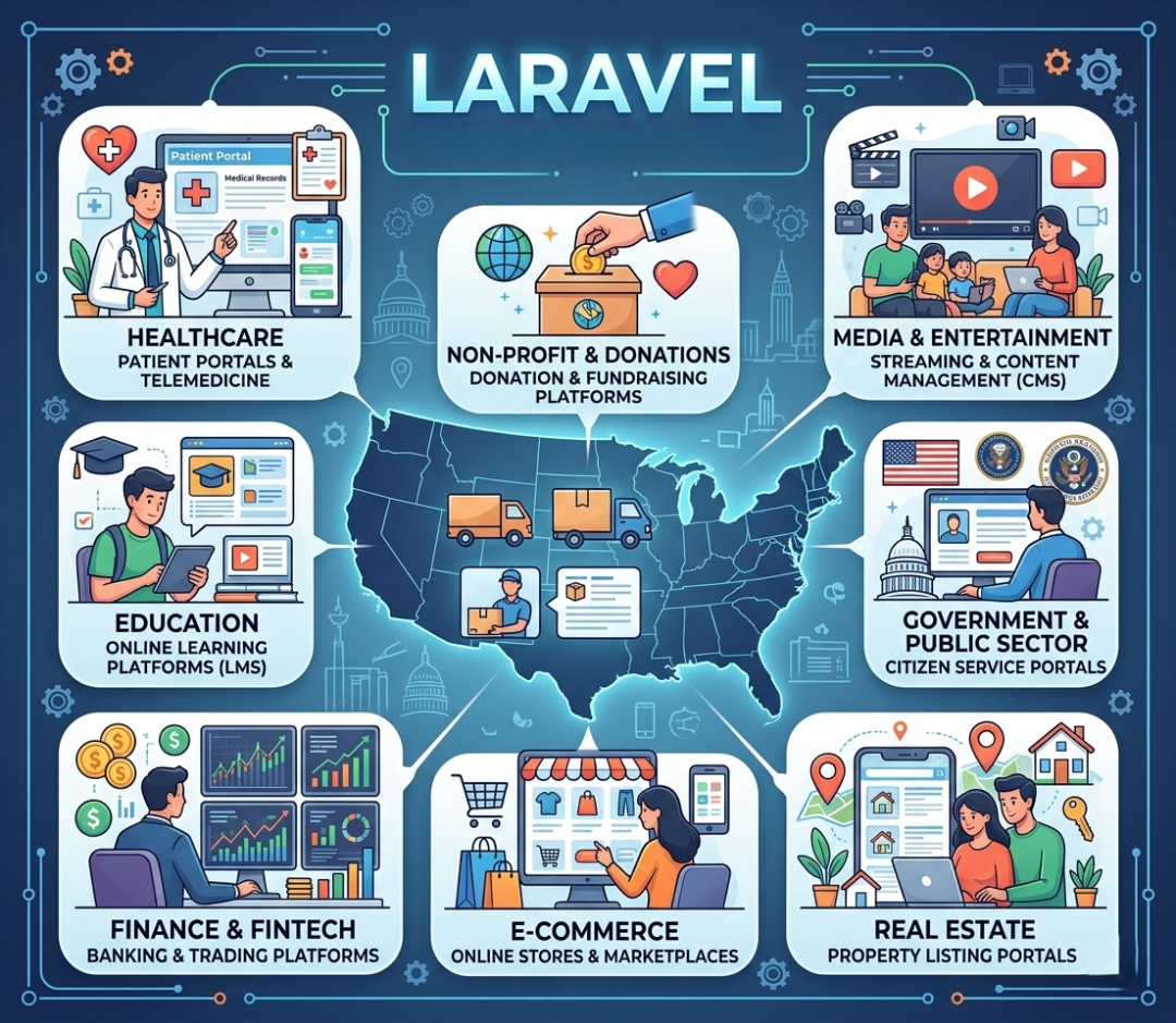 From New York fintech startups to San Francisco SaaS companies, I’ve delivered Laravel solutions across a diverse range of US industries. My experience includes financial platforms, healthcare management tools, logistics applications, membership platforms, and enterprise resource planning systems — each built with the reliability and performance that US clients expect.